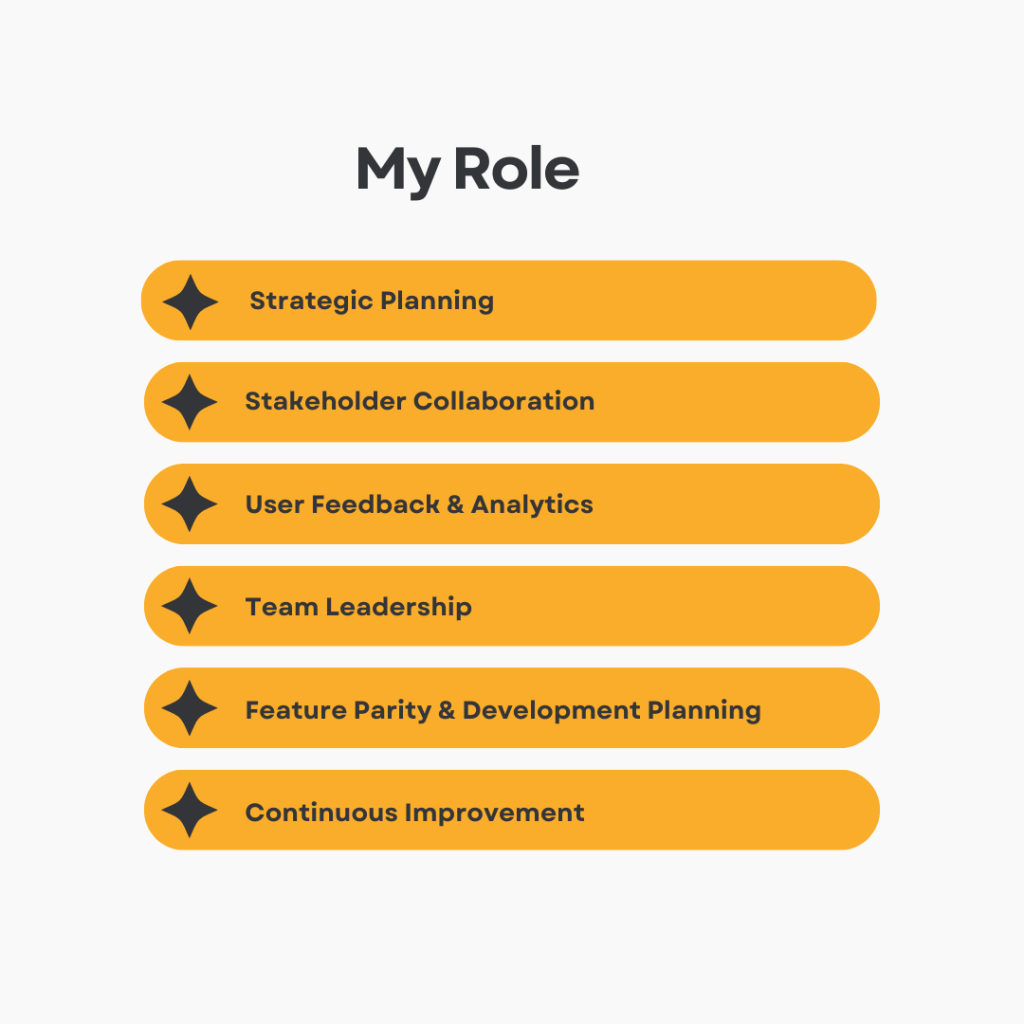 Post-launch, my focus has shifted to managing the ongoing product operations and executing the long-term product strategy, constantly aiming to refine and enhance the product well beyond its MVP framework.