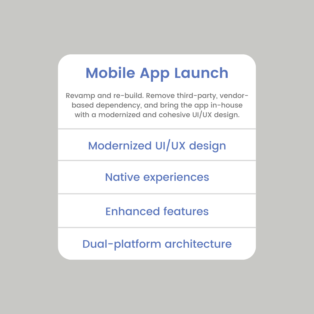 Business Goal: Revamp and re-build. Remove third-party/vendor-based dependency, and bring the app in-house with a modernized and cohesive UI/UX design.